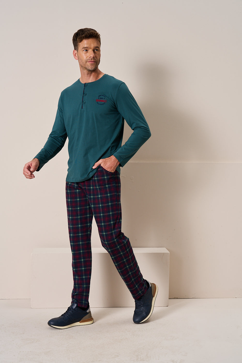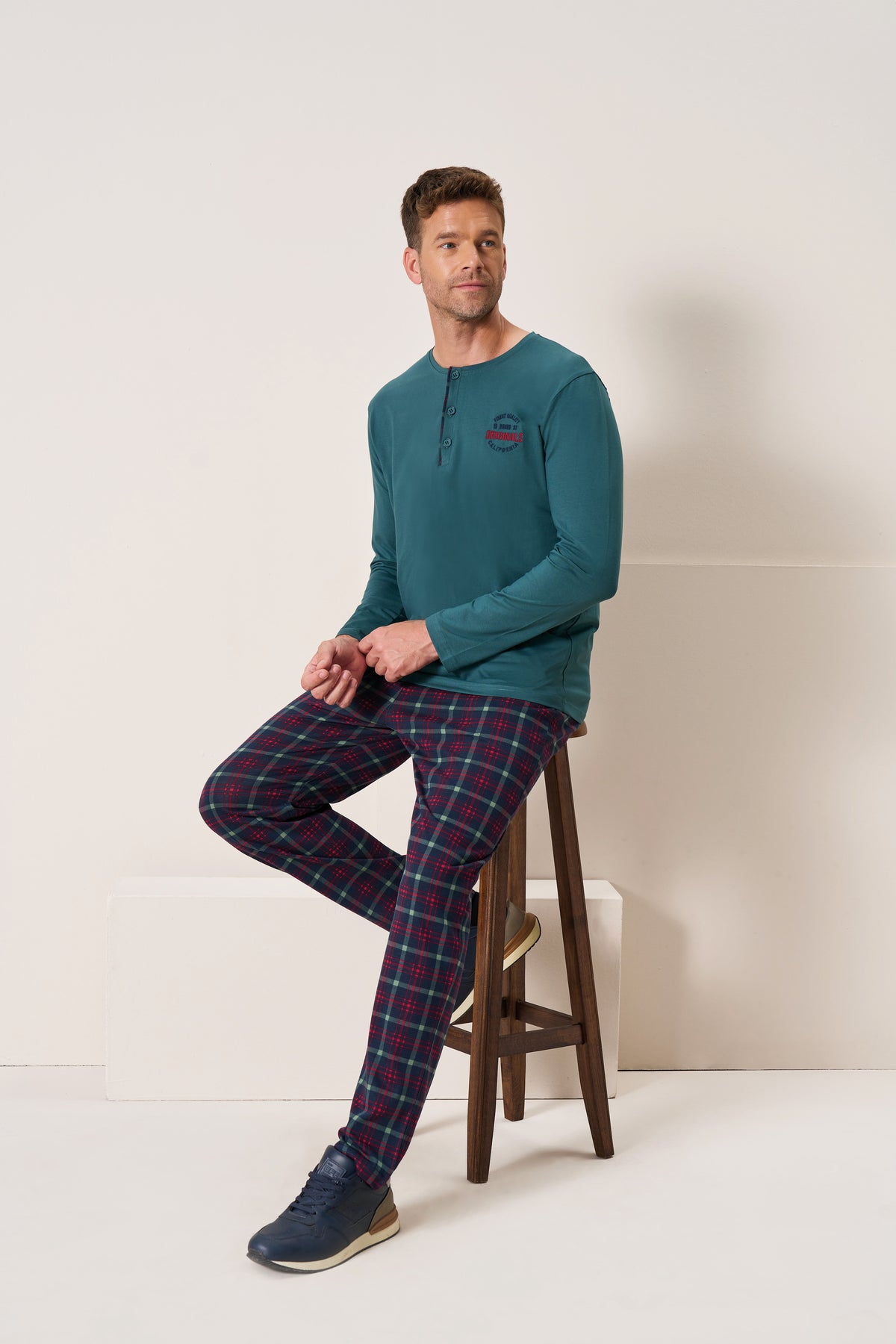 Erkek - Petrol Mavisi Uzun Kollu Eşli Alt Üst Pijama Takımı